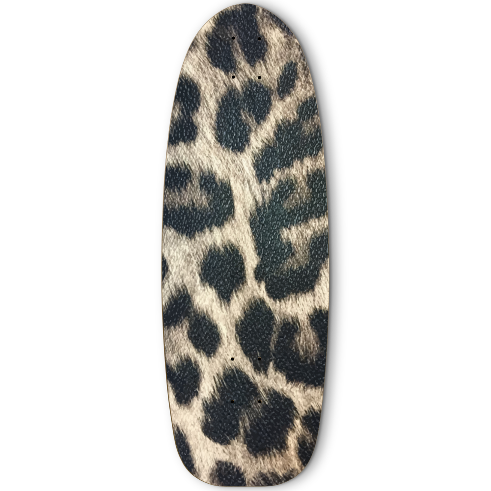 Bold yet refined, this black and gray leopard-print skateboard blends wild instinct with sleek sophistication. The monochrome palette gives the classic pattern a modern, sultry edge making it the perfect fusion of fierce style and understated elegance. A striking piece that commands attention in any space.