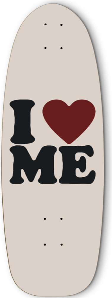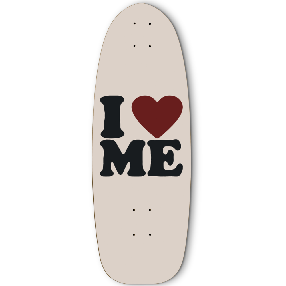 This empowering skateboard features the bold phrase "I love me," a reminder to embrace self-love and confidence. With its simple yet impactful design, it serves as a powerful statement of self-acceptance and strength. Whether displayed in your space or used as an artistic centerpiece, this design encourages you to prioritize yourself and celebrate your unique worth. It's a perfect addition to any room, radiating positivity and a sense of inner strength.